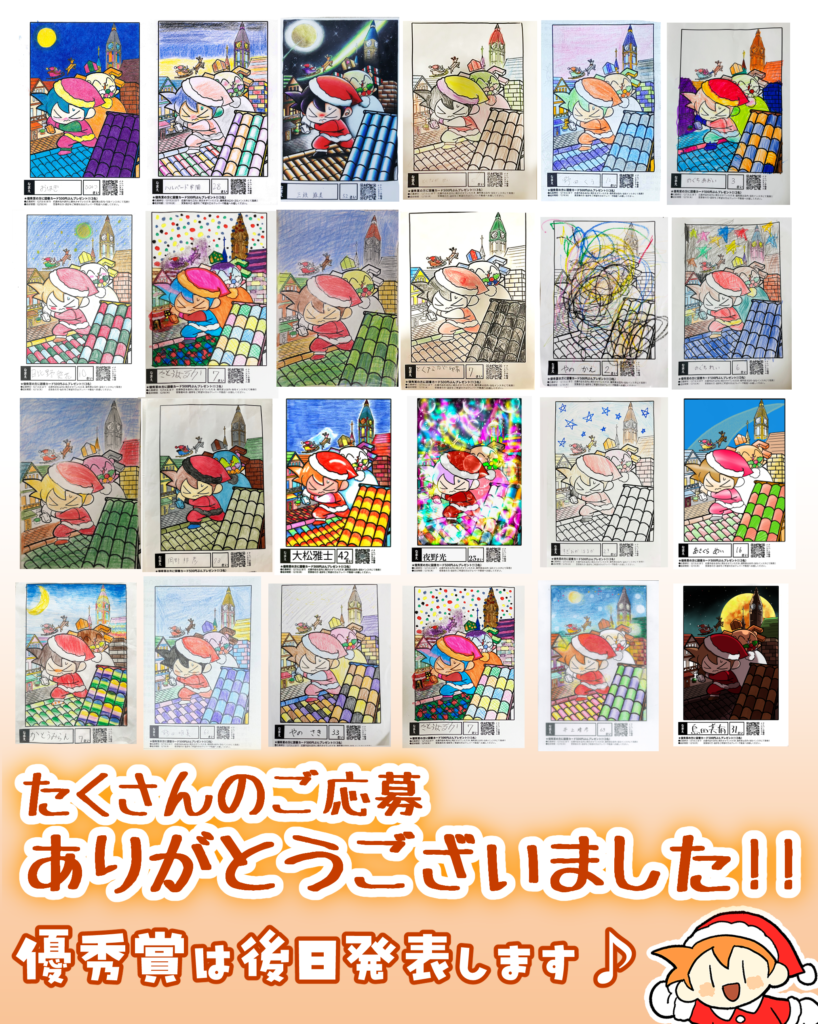 2025.12.14 (日)NEW【ぬりえコンテスト】たくさんのご応募ありがとうございました!たくさんの方々にご応募いただきました✨その数は全部で24作品‼️😳 全国から力作が大集合🤩 店頭もみなさんの作品で華やかに🌞優秀賞3名は決まり次第後日発表しますのでもうしばらくお待ちください🎶改めまして、この度は皆さまご参加いただき誠にありがとうございました🙇皆さまの今年のクリスマスが素敵なものでありますように🫶💕